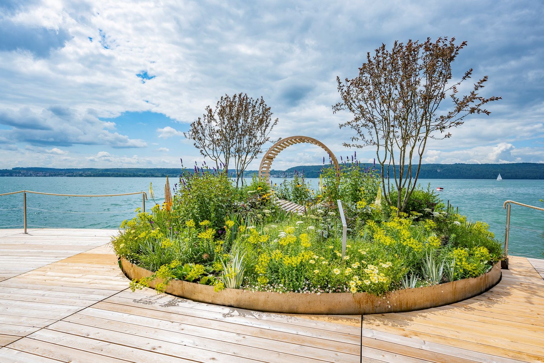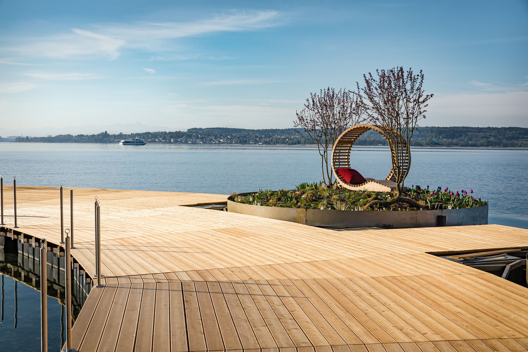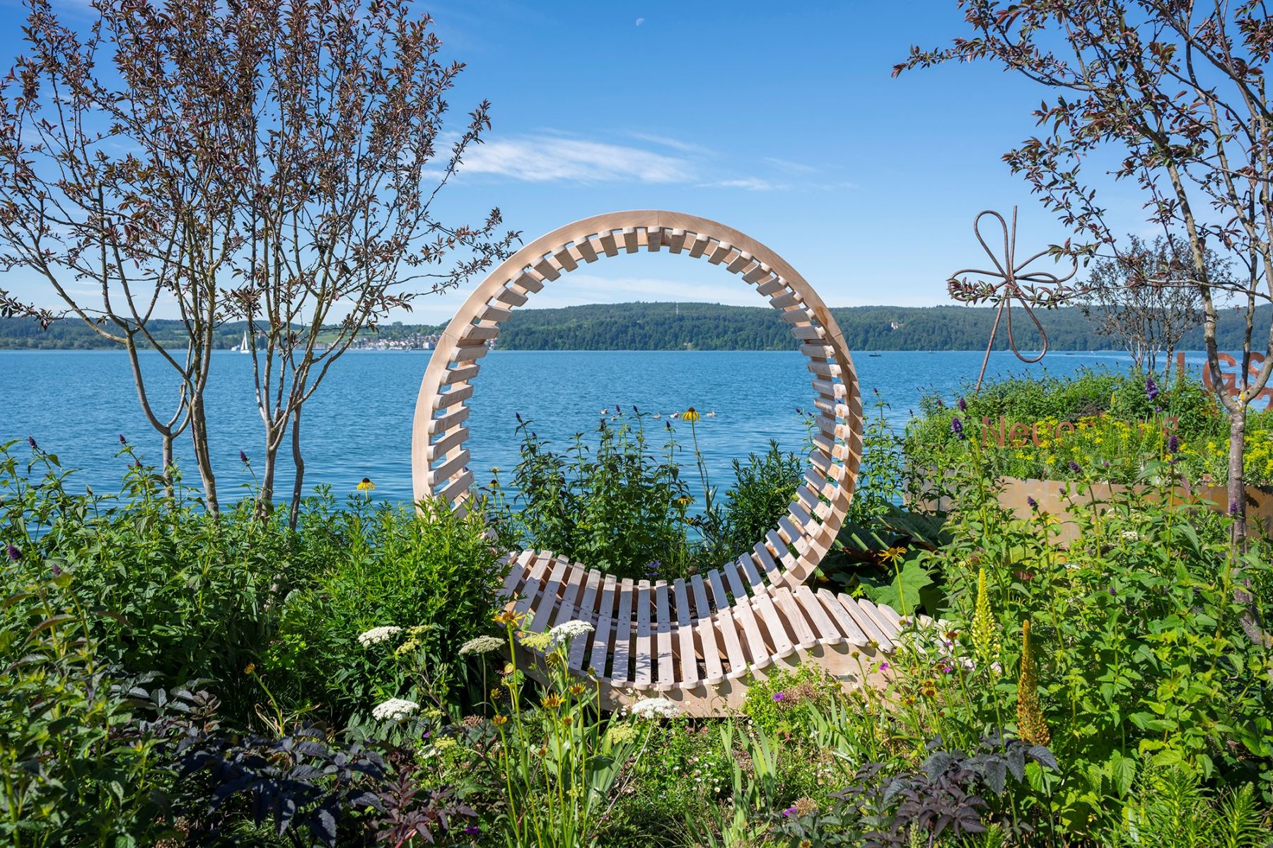 Eine Komposition aus Pflanzen und Sitzmöbel. Eine Aussicht für Genießer.