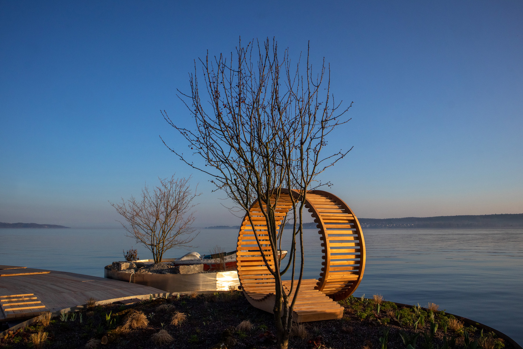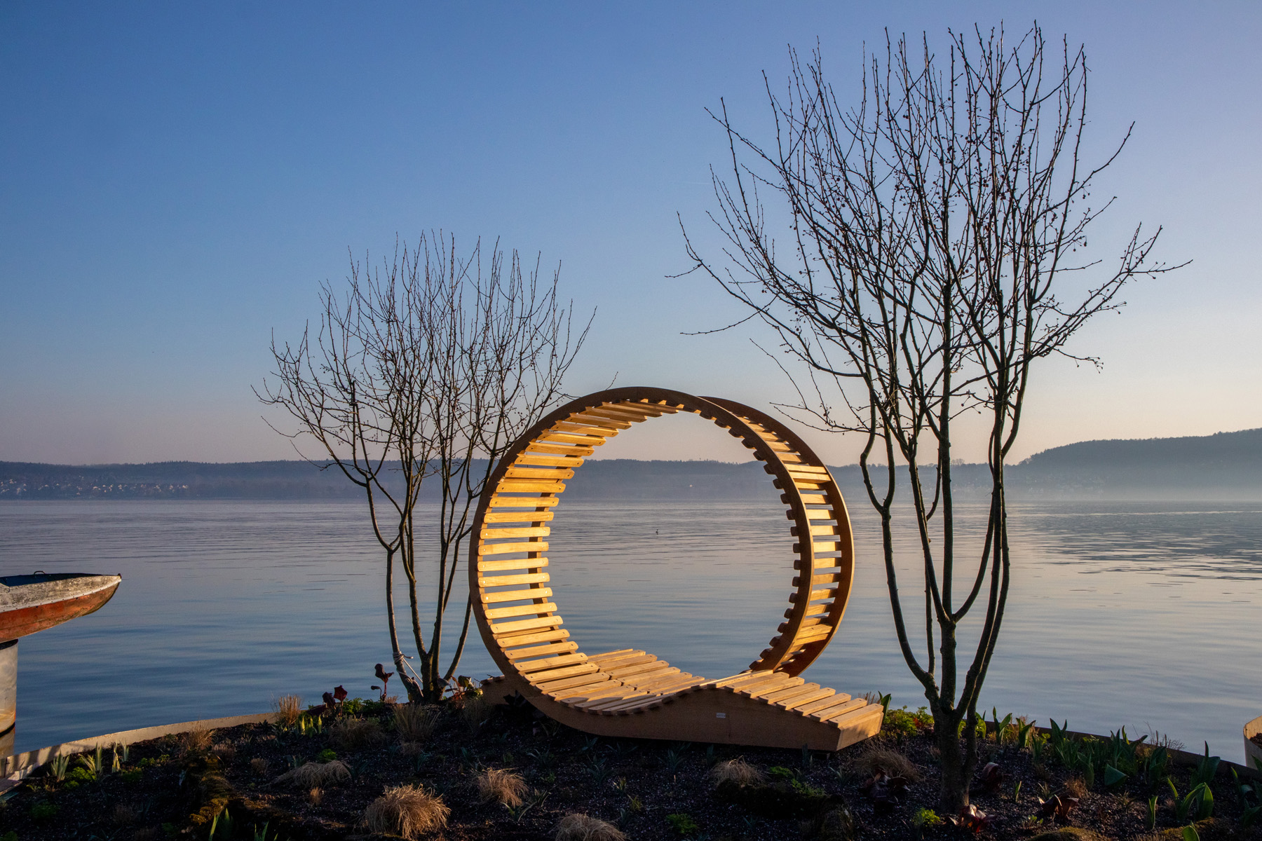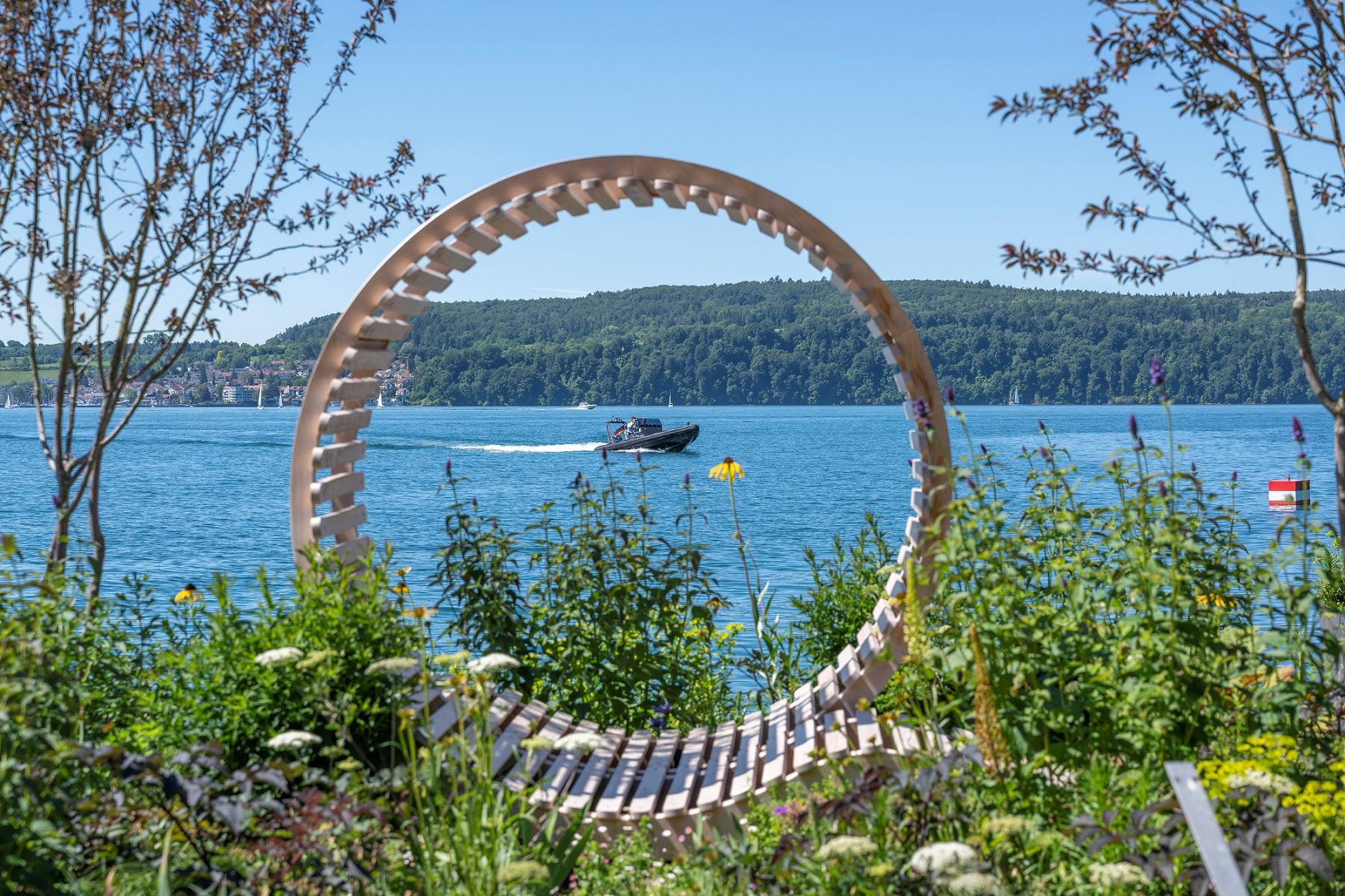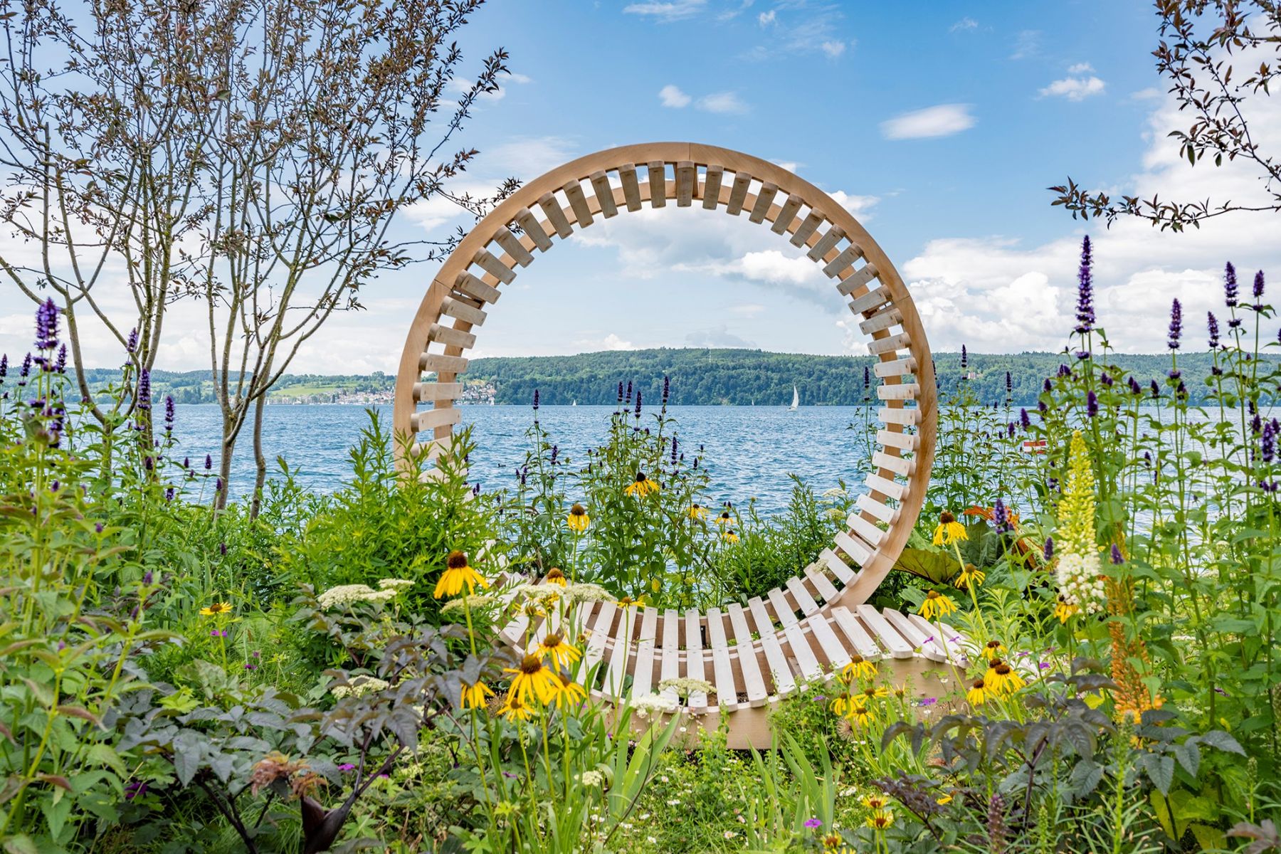 Eine Komposition aus Pflanzen und Sitzmöbel. Eine Aussicht für Genießer.