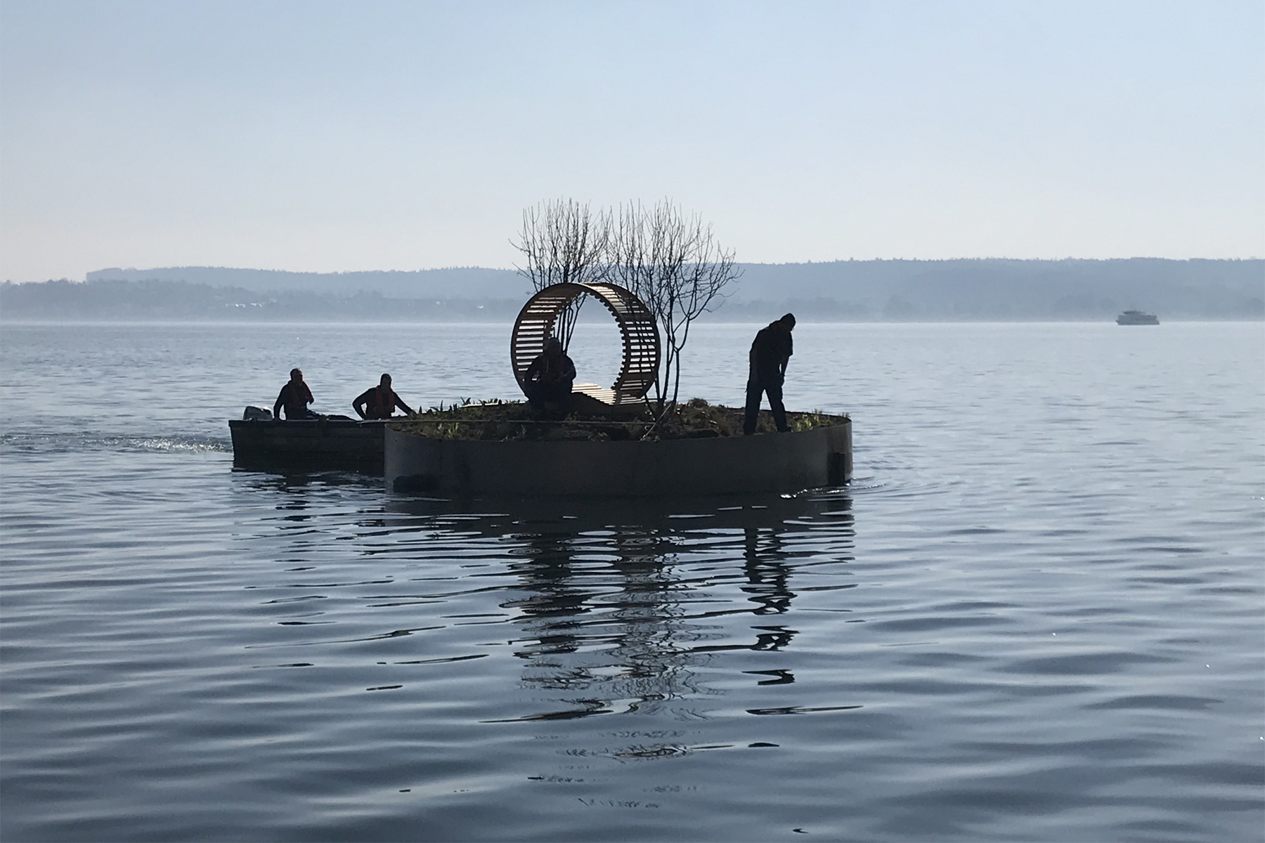 Der Transport des schwimmenden Gartens erfolgt auf dem Seeweg.