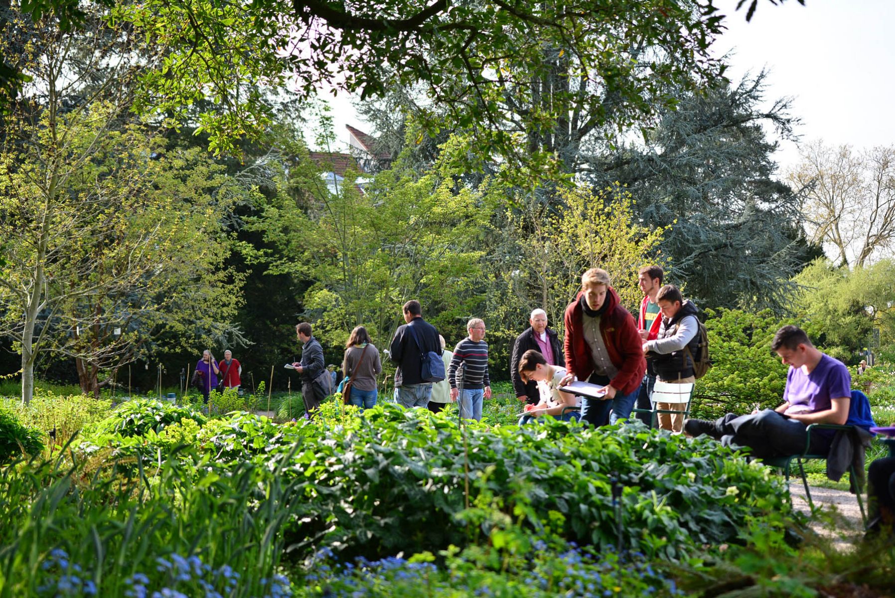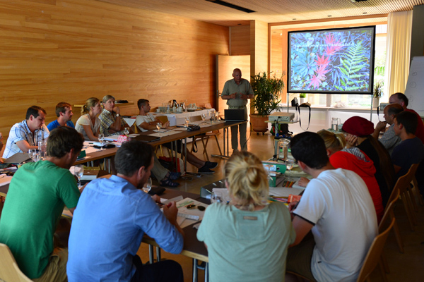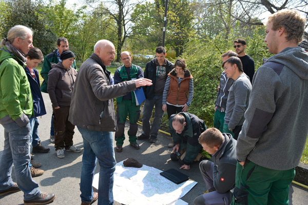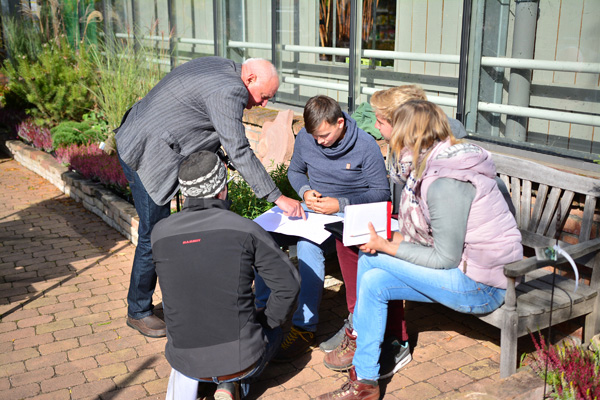 Bild oben: In Weinheim, im Schau- und Sichtungsgarten Hermannshof, kartieren die Teilnehmer eine vorhandene Bepflanzung. (Grundmodul 2)