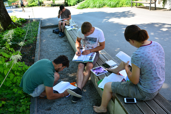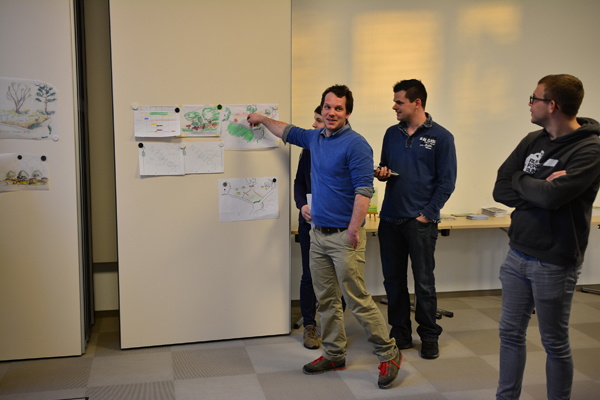 Das Gewinner-Konzept des Wettbewerbs wird gemeinsam realisiert. Dazu wird das Projekt mit dem Titel „Waldlichtung“ mit allen Teilnehmern erst einmal gründlich durchgesprochen. (Aufbaumodul 6)