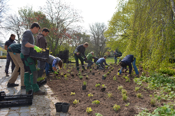 Alle packen bei der Pflanzung mit an. Von der ersten Idee über die Anfertigung detaillierter Pflanzpläne, die Materialbestellung bis hin zur eigenhändigen Ausführung und der Pflege werden alle Aspekte einer gelungenen Bepflanzung beleuchtet. (Aufbaumodul 6)